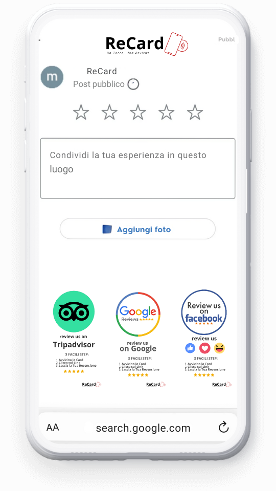 ReCard è la migliore piattaforma per gestire le tue recensioni su Internet.